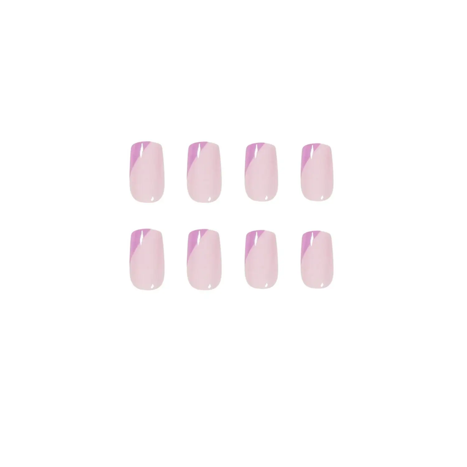 24 шт.коркор. Короткие квадратные накладные ногти с фиолетовым град...