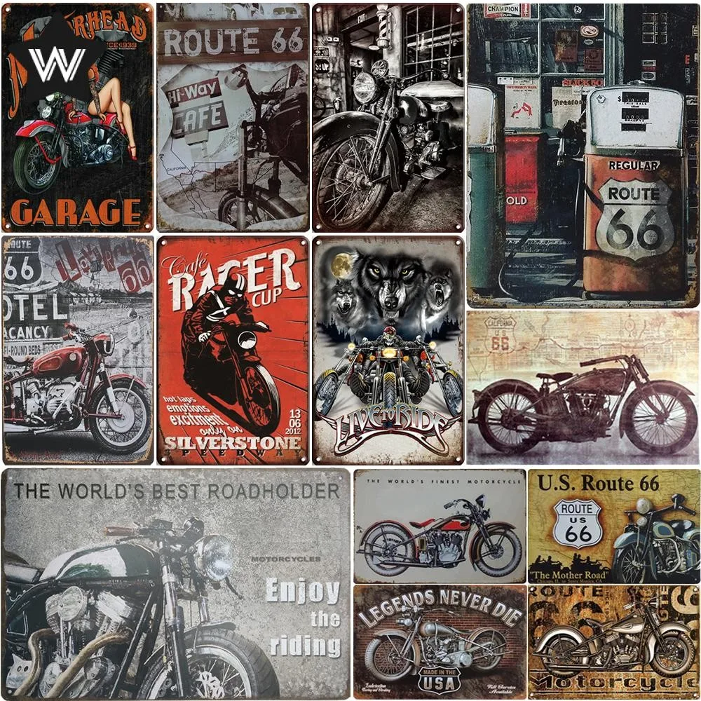 Винтажные мотоциклетные металлические жестяные знаки, США, металлическая пластина, потертый маршрут 66, металлические настенные наклейки для гаража, мужской пещеры, клуба, бара, Декор