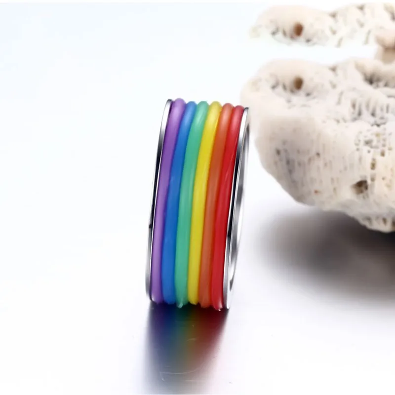 Многоцветное мужское и женское Радужное кольцо ЛГБТ из нержавеющей ...