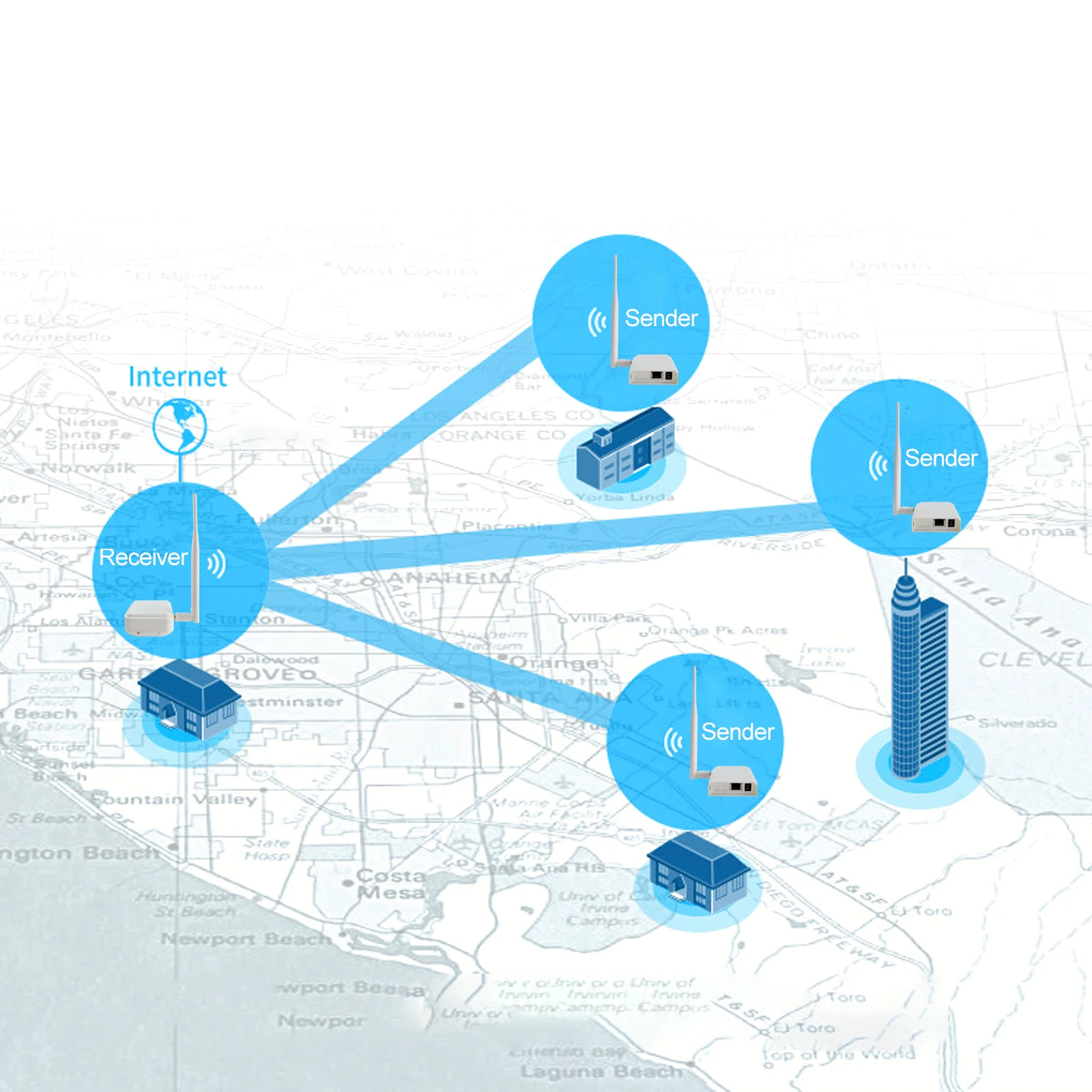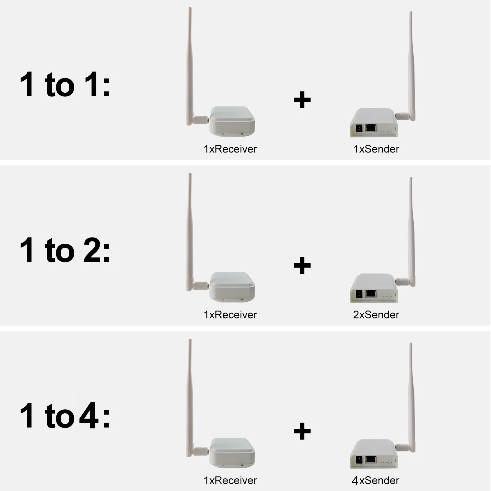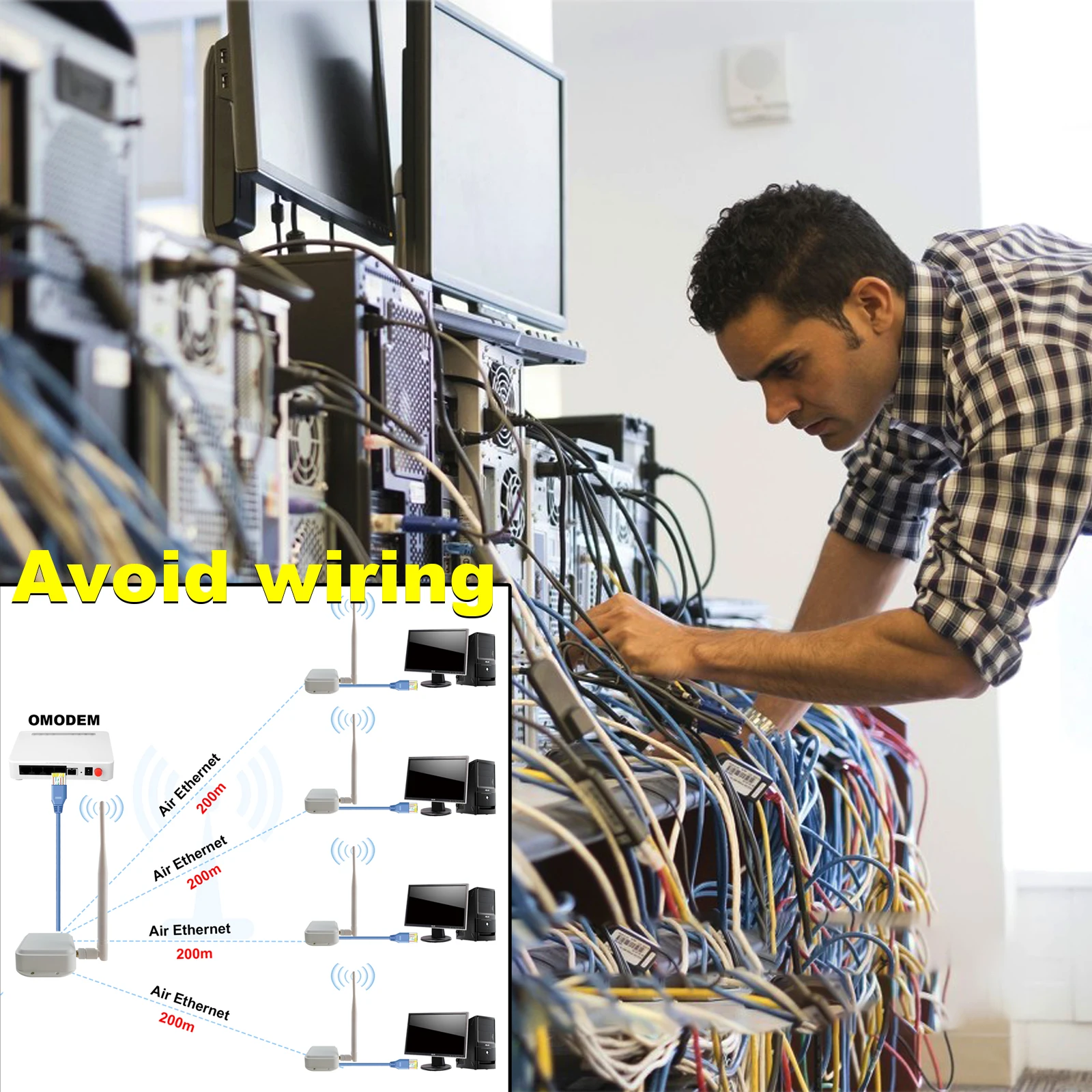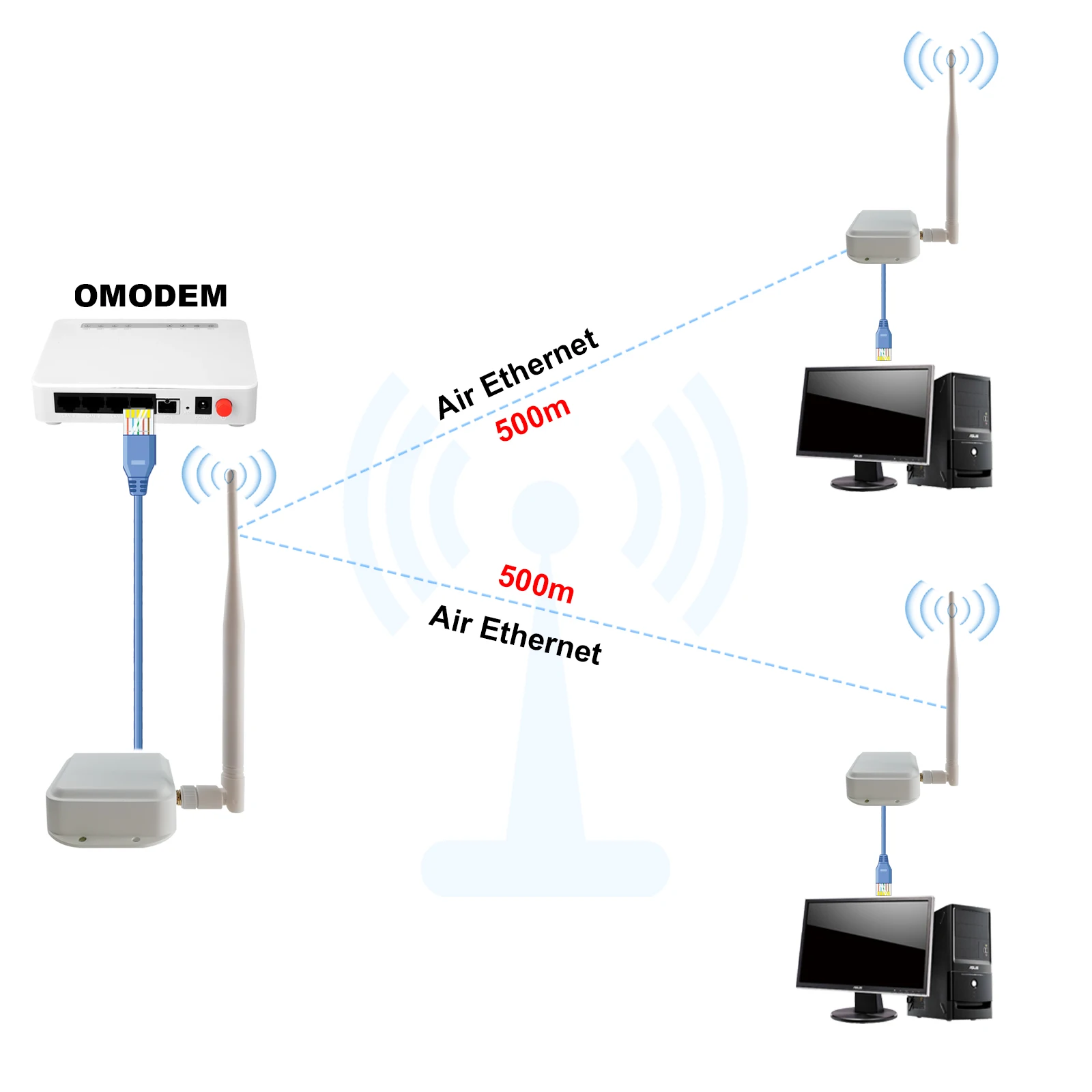 Это новая посылка для оборудования беспроводной передачи, разделенная на две части: передатчик AP и приемник AP. И может быть свободно подобран, приемник может получить до 4 сигналов передатчика одновременно.Который может передавать Ethernet оборудование в пределах 100 Мб, он может передавать до 1000 метров в открытом и свободном режиме. Если есть препятствия или устройства с большим сетевым потоком, расстояние передачи может быть уменьшено. Стоит отметить, что даже если есть препятствия, устройство может передаваться в режиме объемного звучания.Например: если вы разместите передатчик на 1 этаже, вы можете использовать приемник на 8 этаже для получения сетевых сигналов (это зависит от количества окон).Оборудование использует частоту передачи 740-970 МГц, которая имеет характеристики дальней передачи и сильную способность анти-помех.Используя алгоритм шифрования, другие беспроводные устройства не могут искать сигнал устройства, поэтому он скрыт и безопасен. Продукт использует всенаправленную антенну 360 градусов, поэтому вам не нужно регулировать положение передатчика и приемника. Простота установки и использования.
