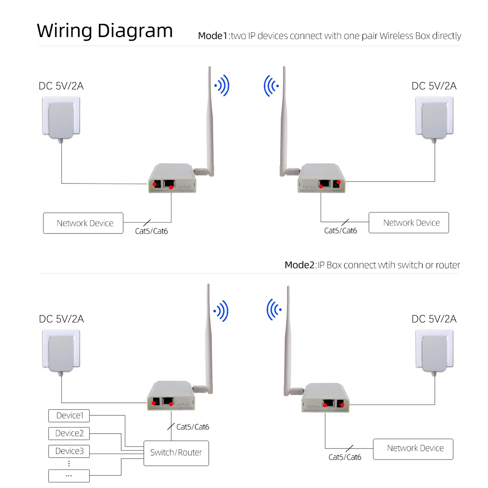 Комплект беспроводных мостов1. Антенный сетевой мост с максимальным расстоянием передачи 3000ft в открытом пространстве.2. Поддержка соединения "точка-точка".3. Дизайн для удаленного мониторинга и широко используется с ip-камерой.4. Подключи и играй, просто построить соединение.