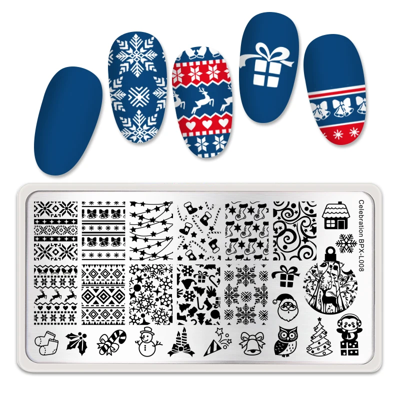 Рождественские штамповочные пластины BORN PRETTY для ногтей модный художественный драгоценный камень текстурное изображение штамп для ногтей шаблон Художественная печать трафаретные инструменты