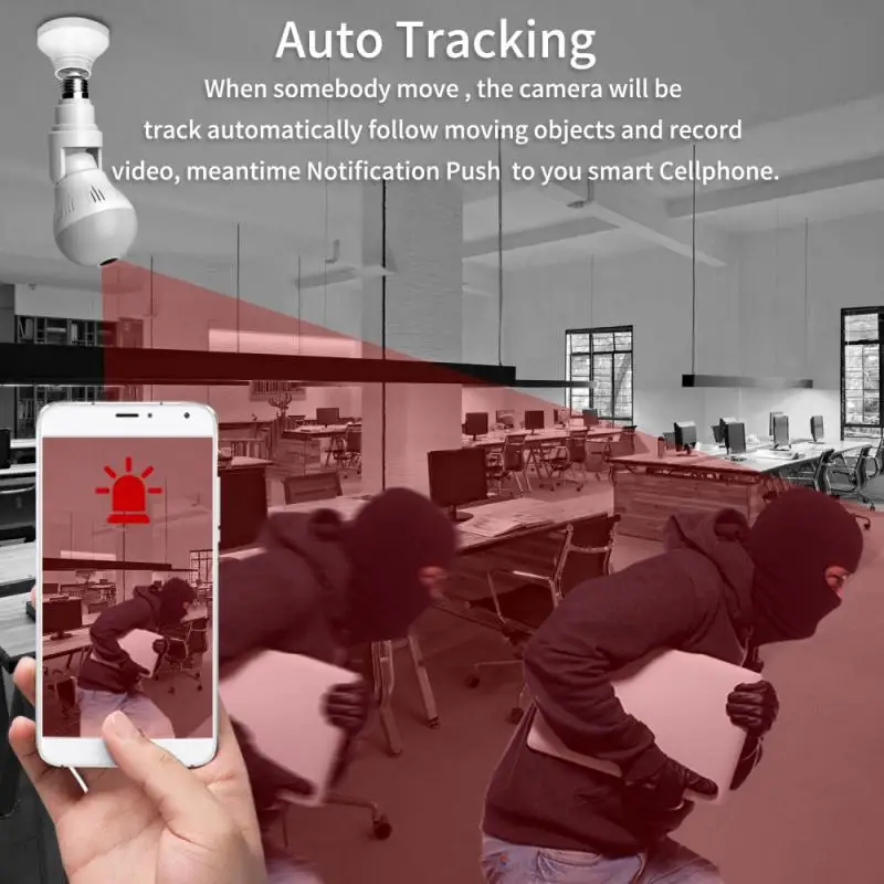 * 360 ° панорамная Камера: 1080P светодиодный беспроводной светильник 360 градусов панорамная камера без слепых зон, который может дать ему полное покрытие всей комнаты, чтобы контролировать каждый угол вашего дома и офиса, хороший монитор для защиты ваших важных вещей, ребенок, домашнее животное, когда вы находитесь вдали от дома.