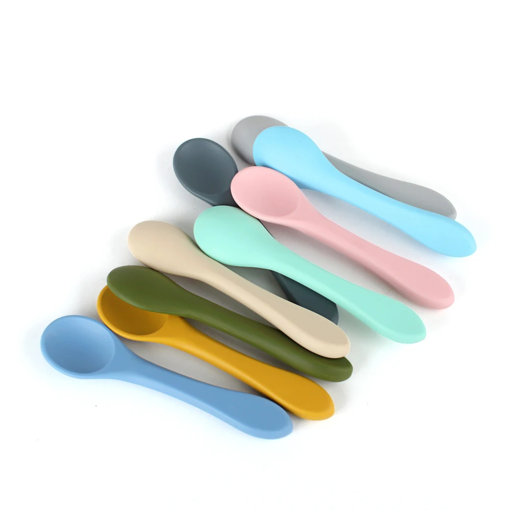 Детские Ложки из мягкого силикона без бисфенола А, безопасная пищевая посуда, однотонная посуда, инструмент для кормления, милая ложка для обучения детей, мальчиков и девочек