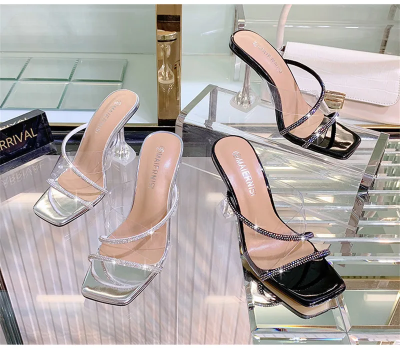 Шлепанцы женские прозрачные на высоком каблуке, Размеры 35-43 44 45 46