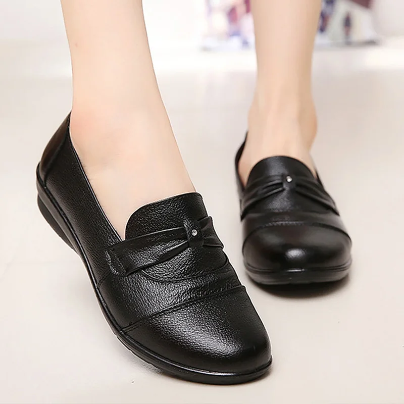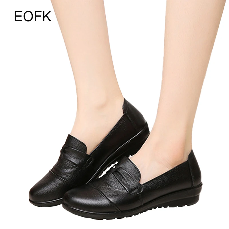Женские лоферы EOFK из натуральной кожи, мягкие балетки на плоской подошве, без застежки, с круглым носком, обувь для мам