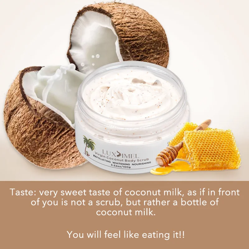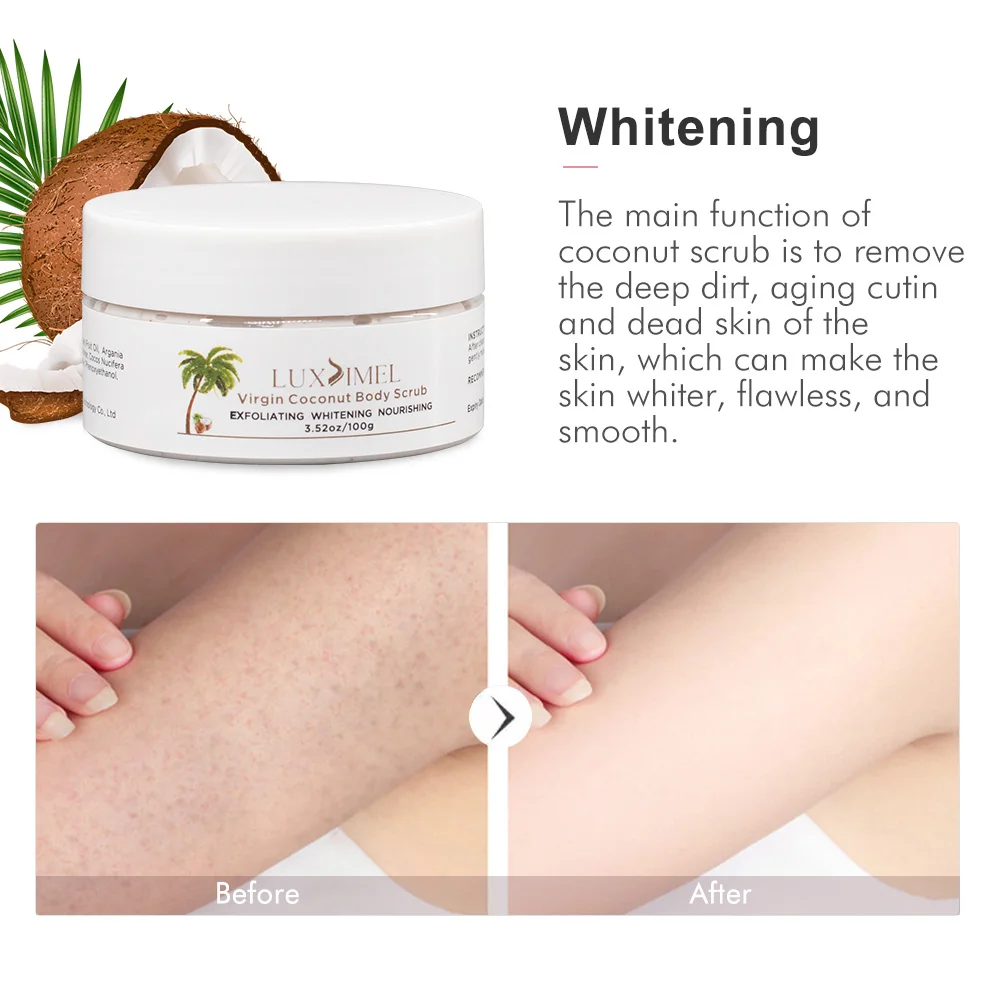 Кокосовый скраб для тела Luxsimel, мягкий сахарный органический Отшелушивающий, отбеливающий, питательный, крем для лица, белый, для ухода за кожей, крем-скраб для тела