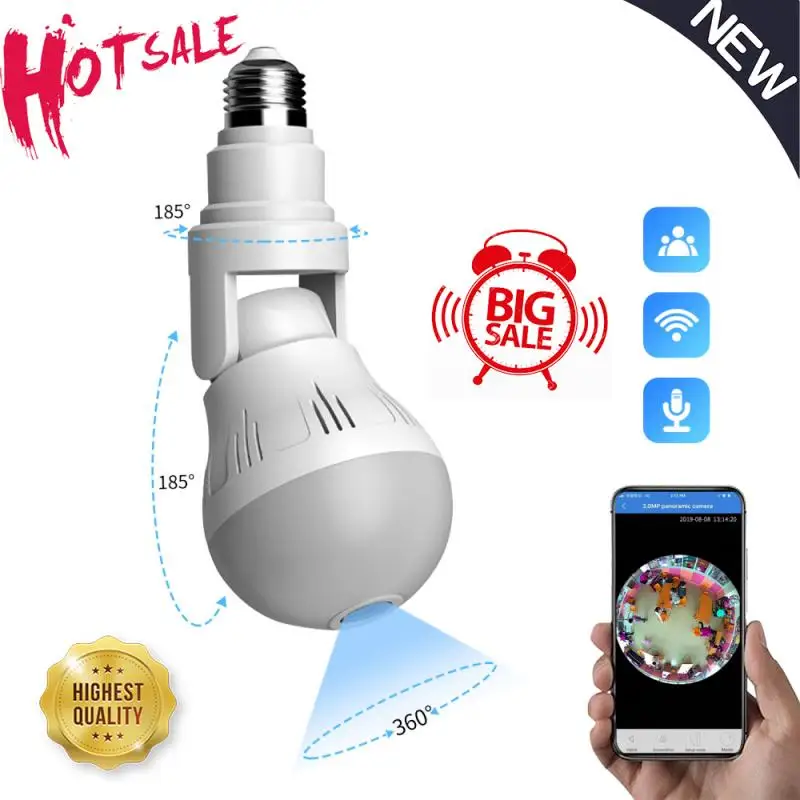 * 360 ° панорамная Камера: 1080P светодиодный беспроводной светильник 360 градусов панорамная камера без слепых зон, который может дать ему полное покрытие всей комнаты, чтобы контролировать каждый угол вашего дома и офиса, хороший монитор для защиты ваших важных вещей, ребенок, домашнее животное, когда вы находитесь вдали от дома.