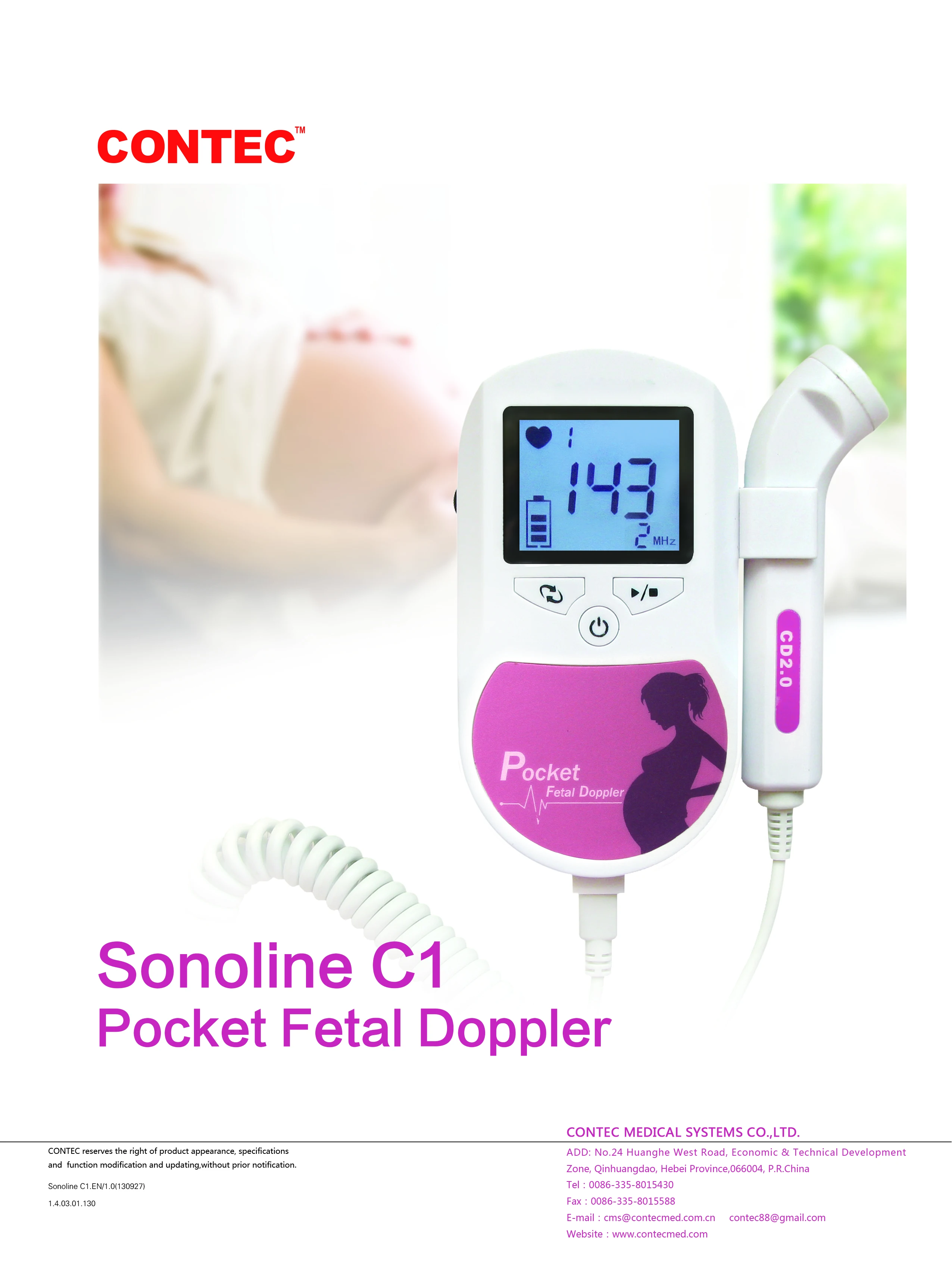 CONTEC уход за ребенком портативный сердце карман фетальный допплер розовый Babysoud C /C1 2 МГц