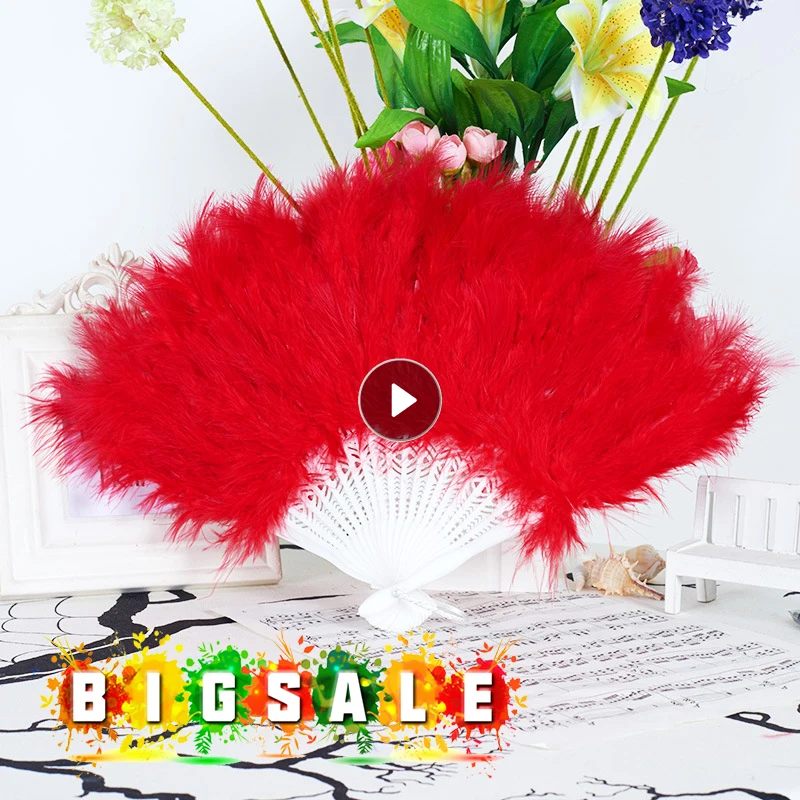 Складной Ручной Веер с мягкими перьями в китайском стиле для танцев...