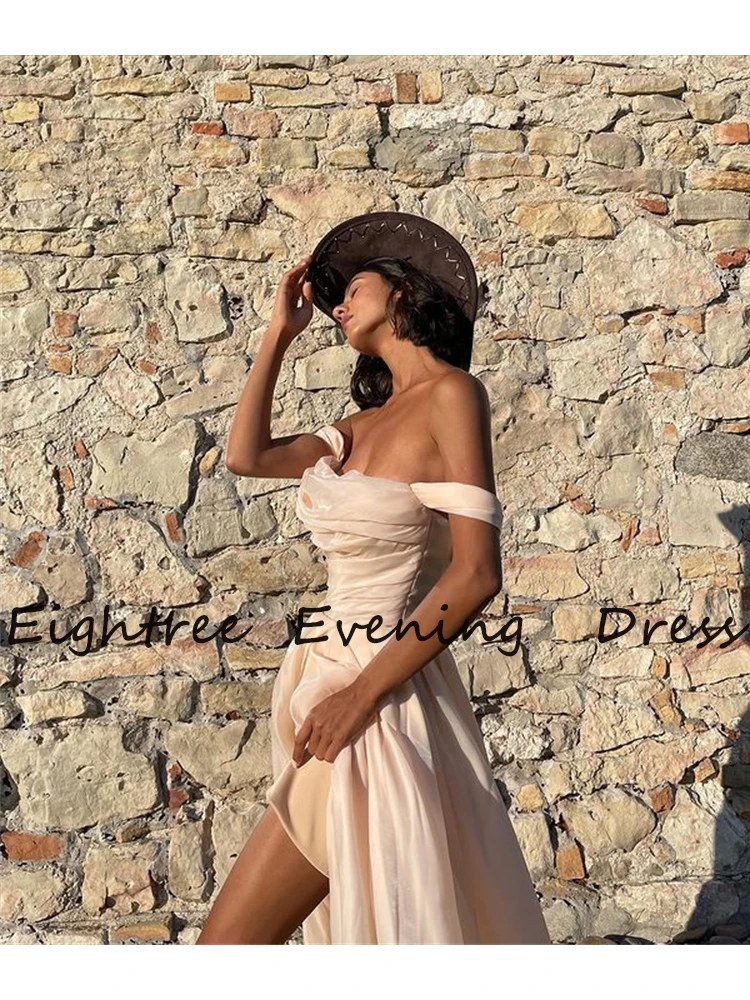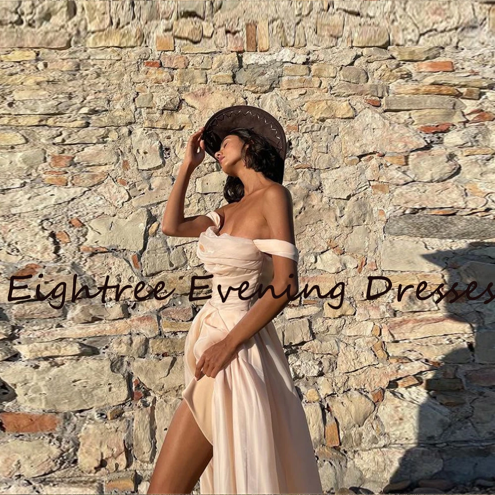 Светло-розовое атласное длинное вечернее платье Eight Tree, элегантное пляжное платье без рукавов и бретелек с открытыми плечами для выпускного вечера, 2021