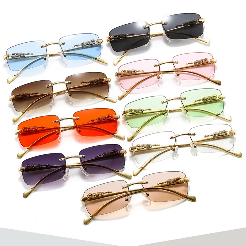 2021 Винтажные Солнцезащитные очки без оправы с прямоугольными режущими линзами мужские солнцезащитные очки в стиле ретро с градиентом чайные УНИКАЛЬНЫЕ Солнцезащитные очки Оптовая Продажа с УФ-защитой