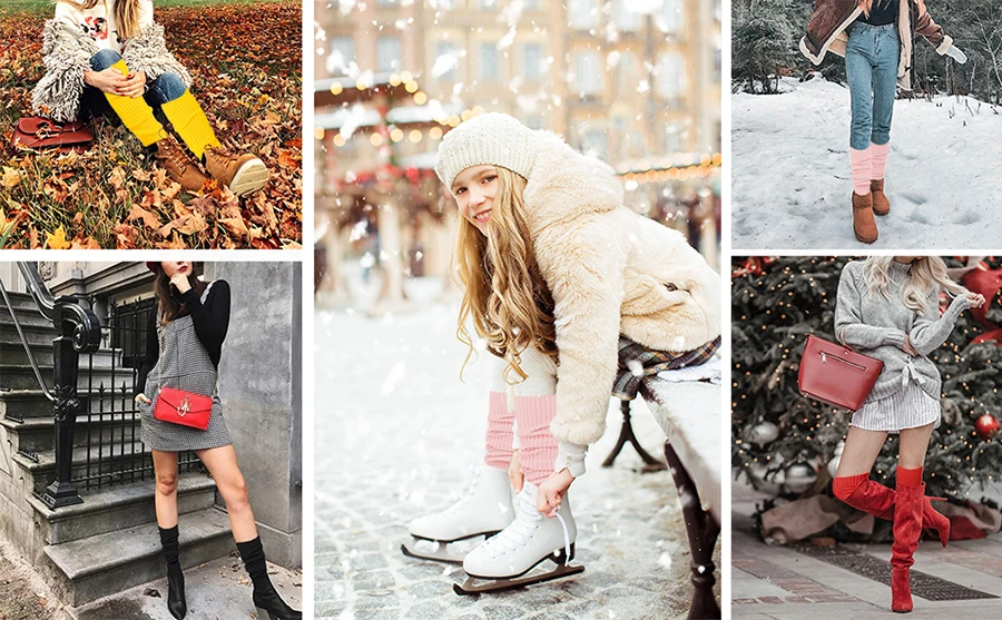 Женские гетры разноцветные шерстяные вязаные ног крышка аксессуары ...