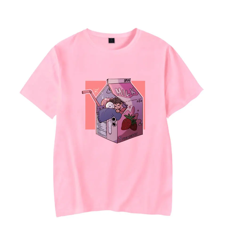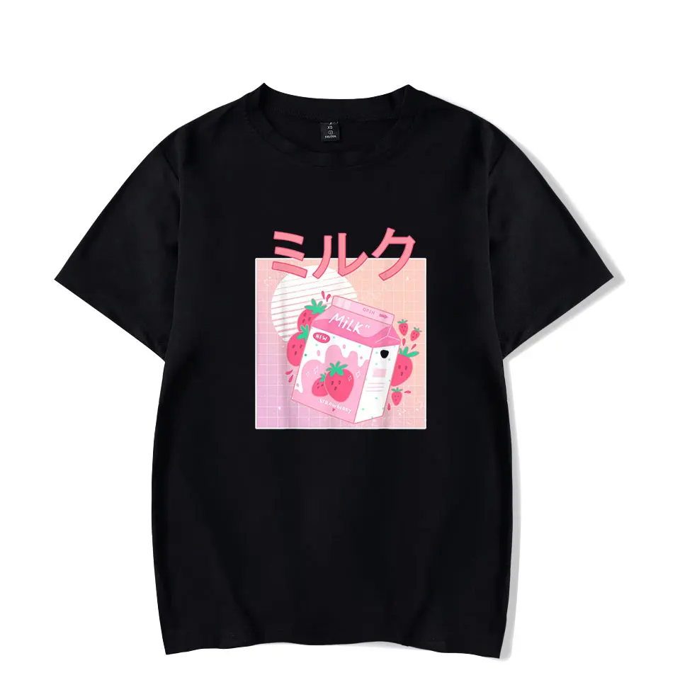 Популярные креп-Жоржет Merch унисекс футболки клубничный молочный принт одежда уличная одежда Харадзюку футболки кавайные футболки