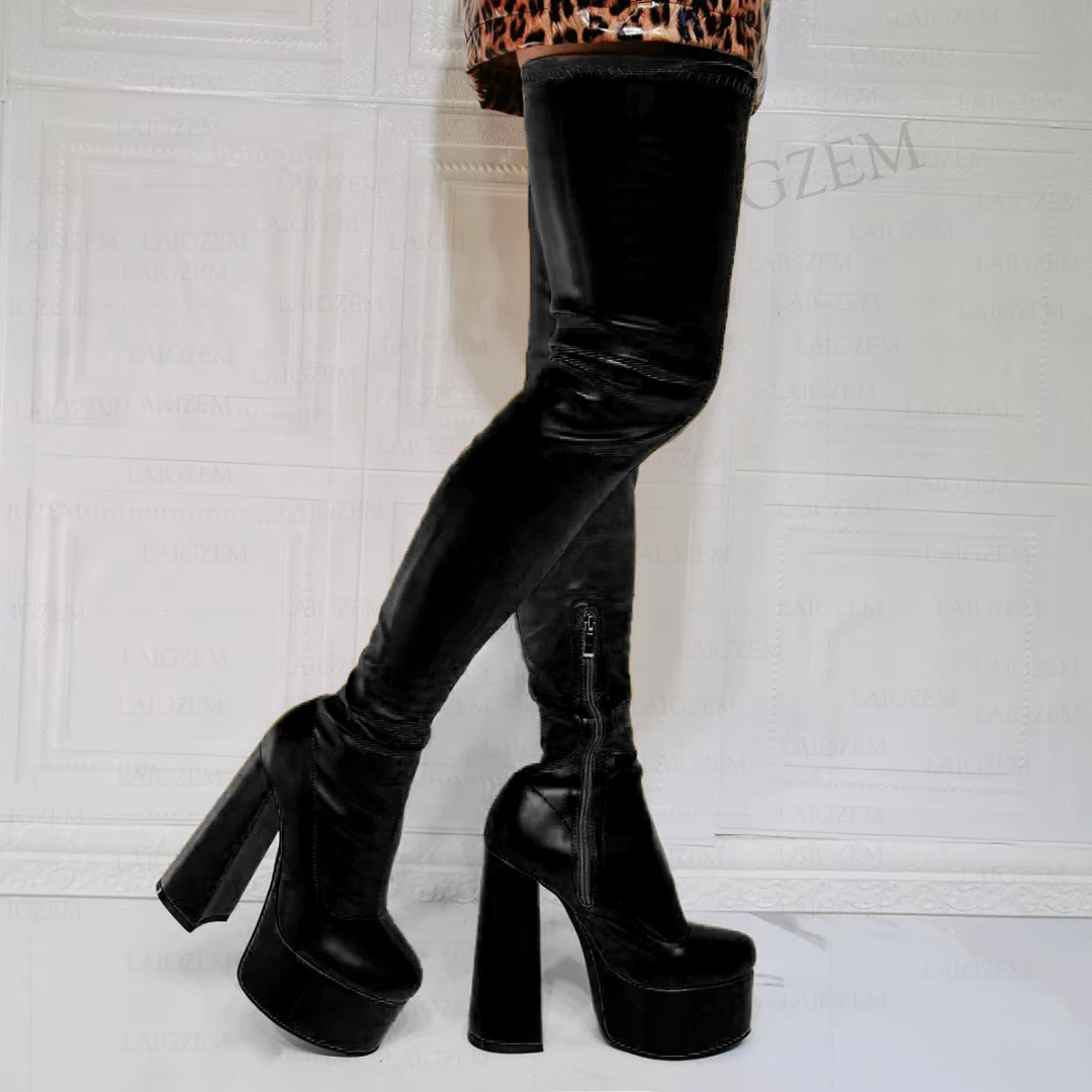SEIIHEM/женские сапоги до бедра на платформе и толстом каблуке; Ботфорты из искусственной кожи; Sapato; Женская обувь; Большие размеры 39, 42, 44, 47
