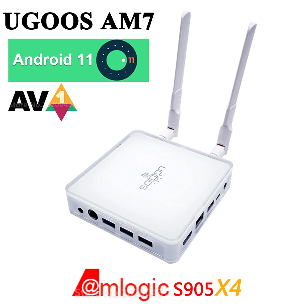 Приставка Смарт-ТВ UGOOS AM7 Amlogic S905X4 AV1 CEC Android 11 4 Гб DDR4 32 ГБ ROM Type-C WiFi 6 1000M LAN BT5.0 4K HD медиаплеер