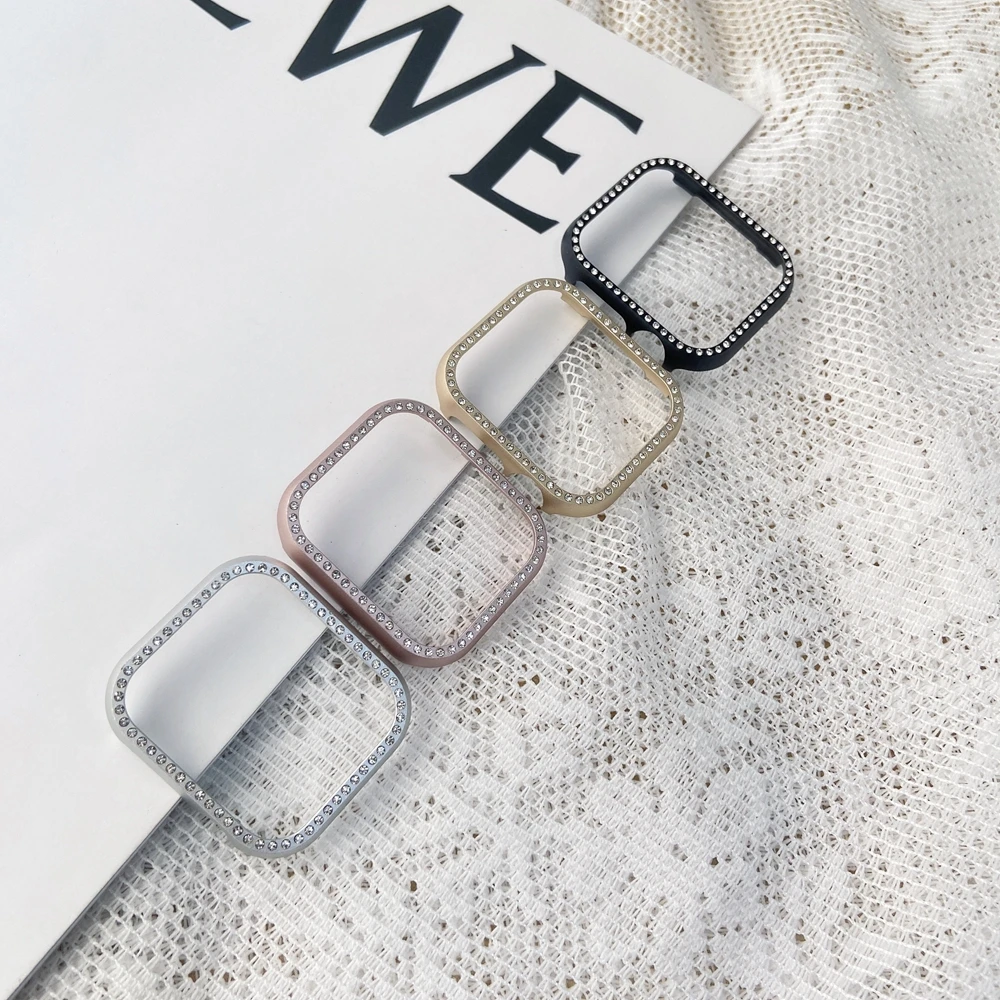 Защитный чехол с блестящими бриллиантами для Apple Watch Series 3 2 1 4044 мм, аксессуары для iwatch 3842 мм SE 6 5 4, металлическая рамка-бампер