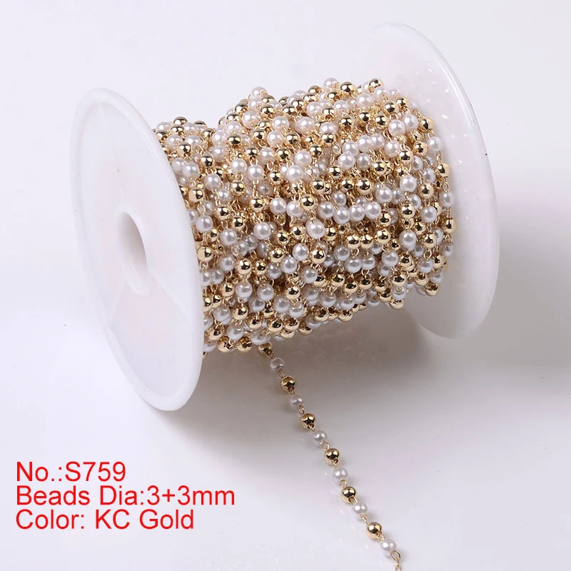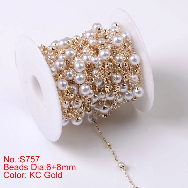 1 млот имитация жемчуга интервал металлические латунные бусины цепь...