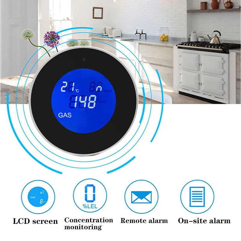 Детектор Утечки природного газа Tuya, Wi-Fi детектор температуры с ЖК-дисплеем и сигнализацией для утечки газа в кухне