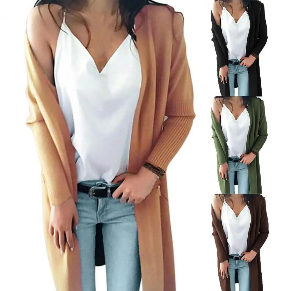 Женский вязаный кардиган, винтажный свободный свитер, однотонный джемпер оверсайз, модная одежда, вязаное повседневное пальто, уличная одежда