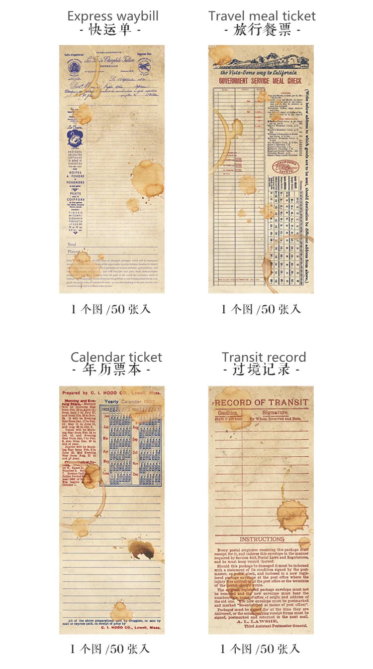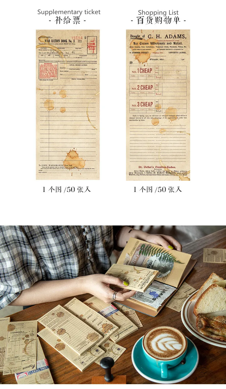 50 листов/упаковка кофе Длинные билеты крафт-бумага Винтаж блокнот Скрапбукинг Журнал база коллаж Декоративные DIY Материал Бумага