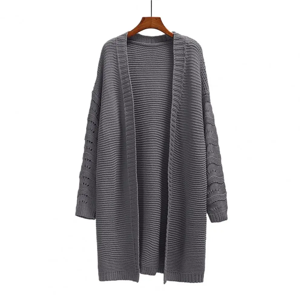 Пальто, женские свитера, Зимний вязаный свитер с длинным рукавом и открытым спереди, кардиган, пальто средней длины, женская куртка, женская одежда
