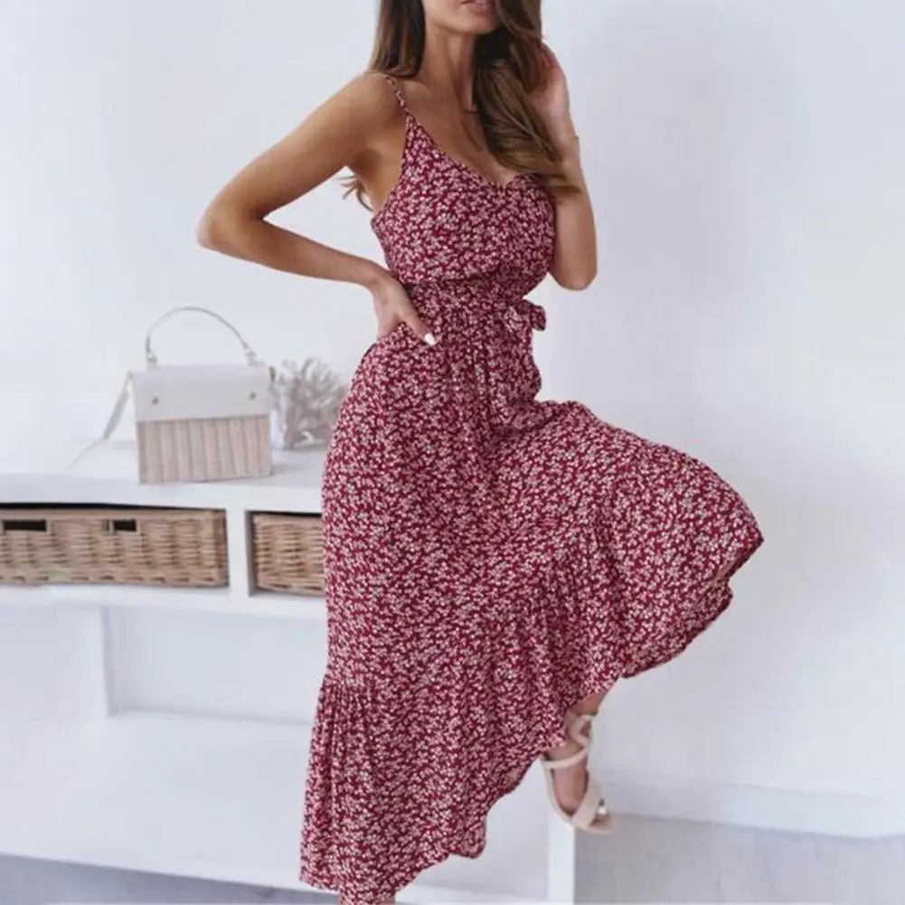 Платье Макси женское на бретельках, с цветочным принтом и открытой спиной