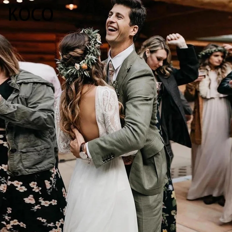 MACDUGAL темпераментное сексуальное платье с длинным рукавом с круглым вырезом Аппликация с открытой спиной в богемном стиле кружевное свадебное платье Русалка для пола