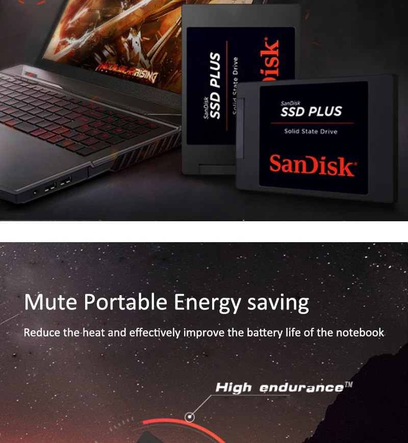 Внутренний жесткий диск Sandisk SSD Plus, твердотельный накопитель ...