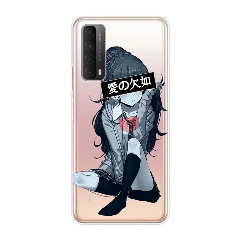 Грустный японский аниме девушка для Huawei Y9S Y6S Y8S Y9A Y7A Y8P Y7P Y5P Y6P Y7 Y6 Y5 Pro Prime 2020 2019 мягкий чехол для телефона