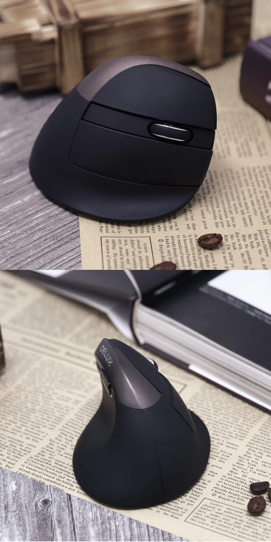 Delux M618Mini Bluetooth 4,0 + 2,4G Беспроводная беззвучная Вертикальная мышь 4 зубчатая DPI RGB эргономичная перезаряжаемая мышь для ПК ноутбука смартфона
