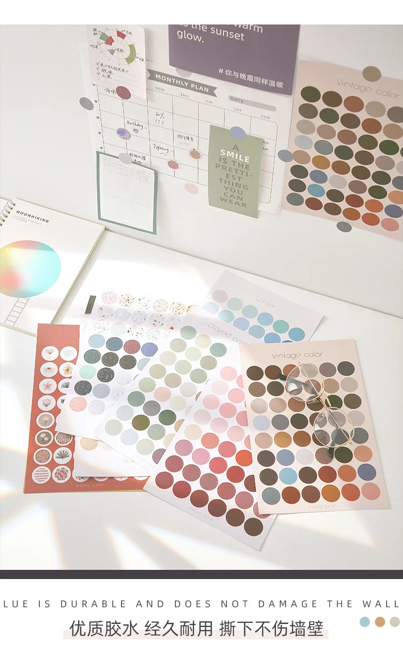 2 шт.компл. Morandi круглая наклейка, многофункциональные основные маркерные наклейки сделай сам, дневник, Декор, журнал, милая Закладка