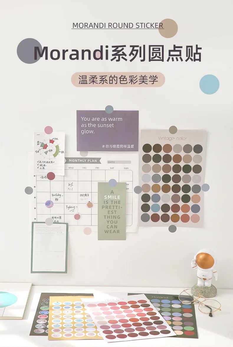 1 лист серия Morandi, круглые игрушечные наклейки в горошек, Детски...