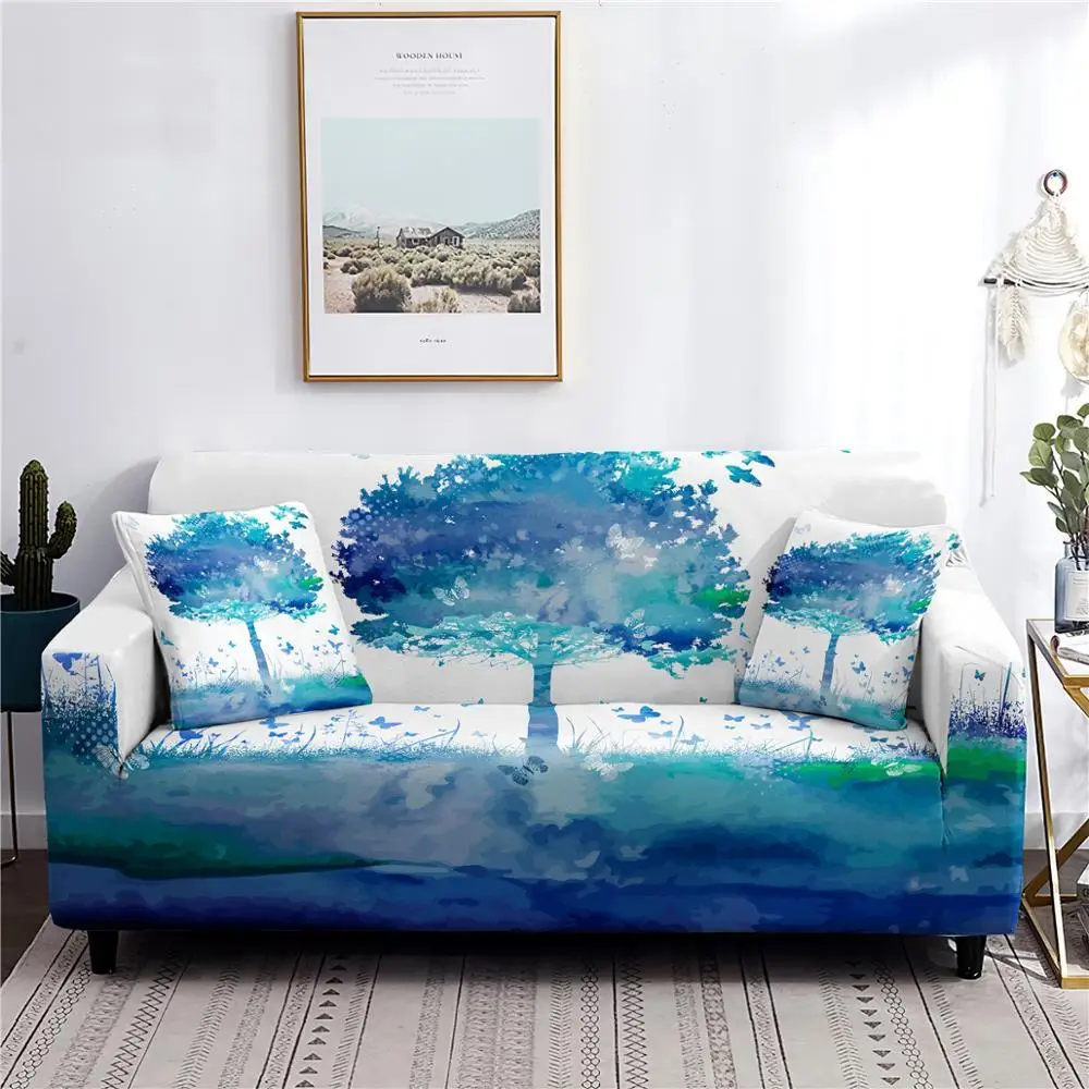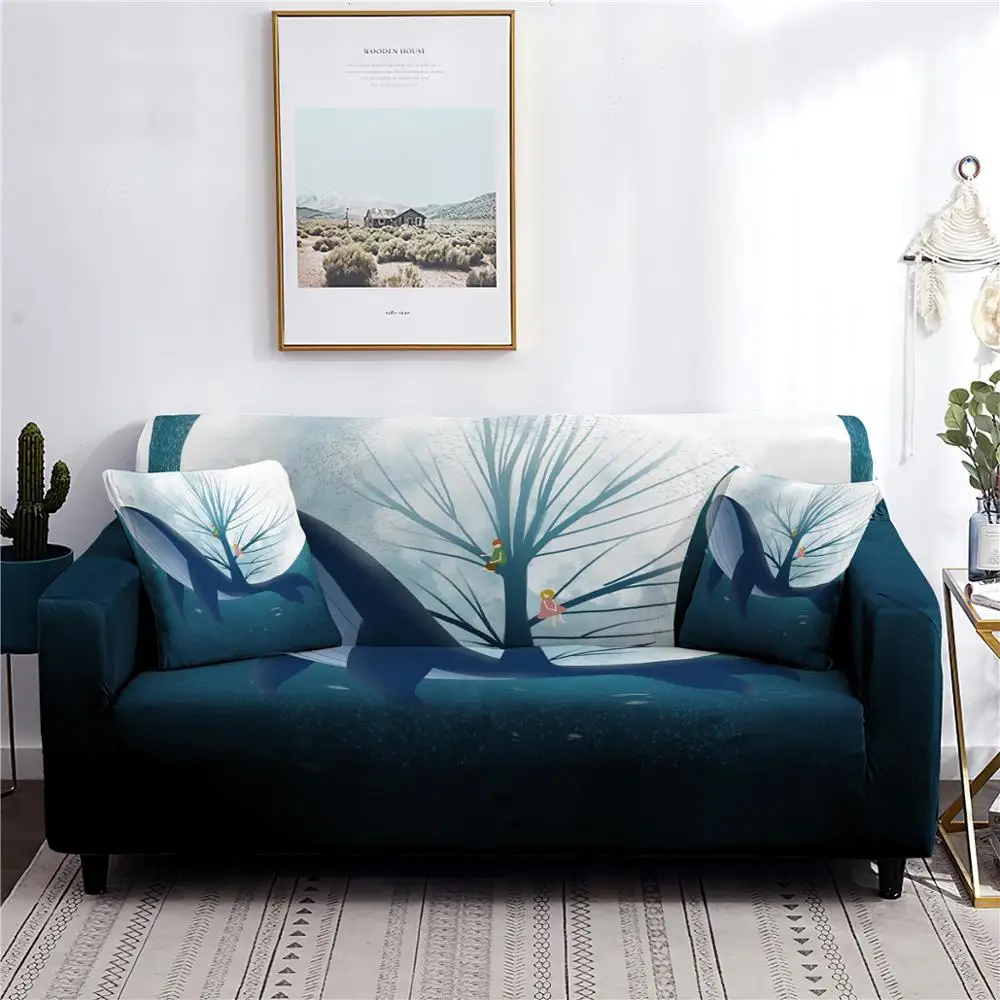 Универсальный чехол для дивана, эластичный чехол на 1234-местный диван с принтом и сегментами, для гостиной