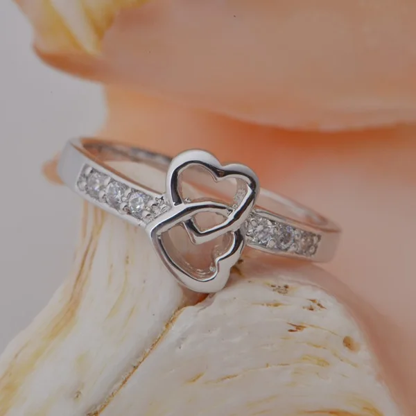 Женское кольцо с двойным сердечком, простое посеребренное кольцо в ...