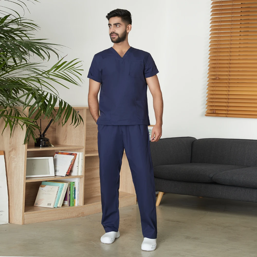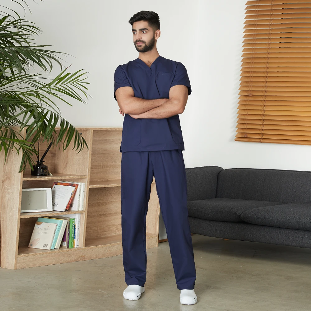 Костюм медицинский однотонный с V-образным вырезом для мужчин