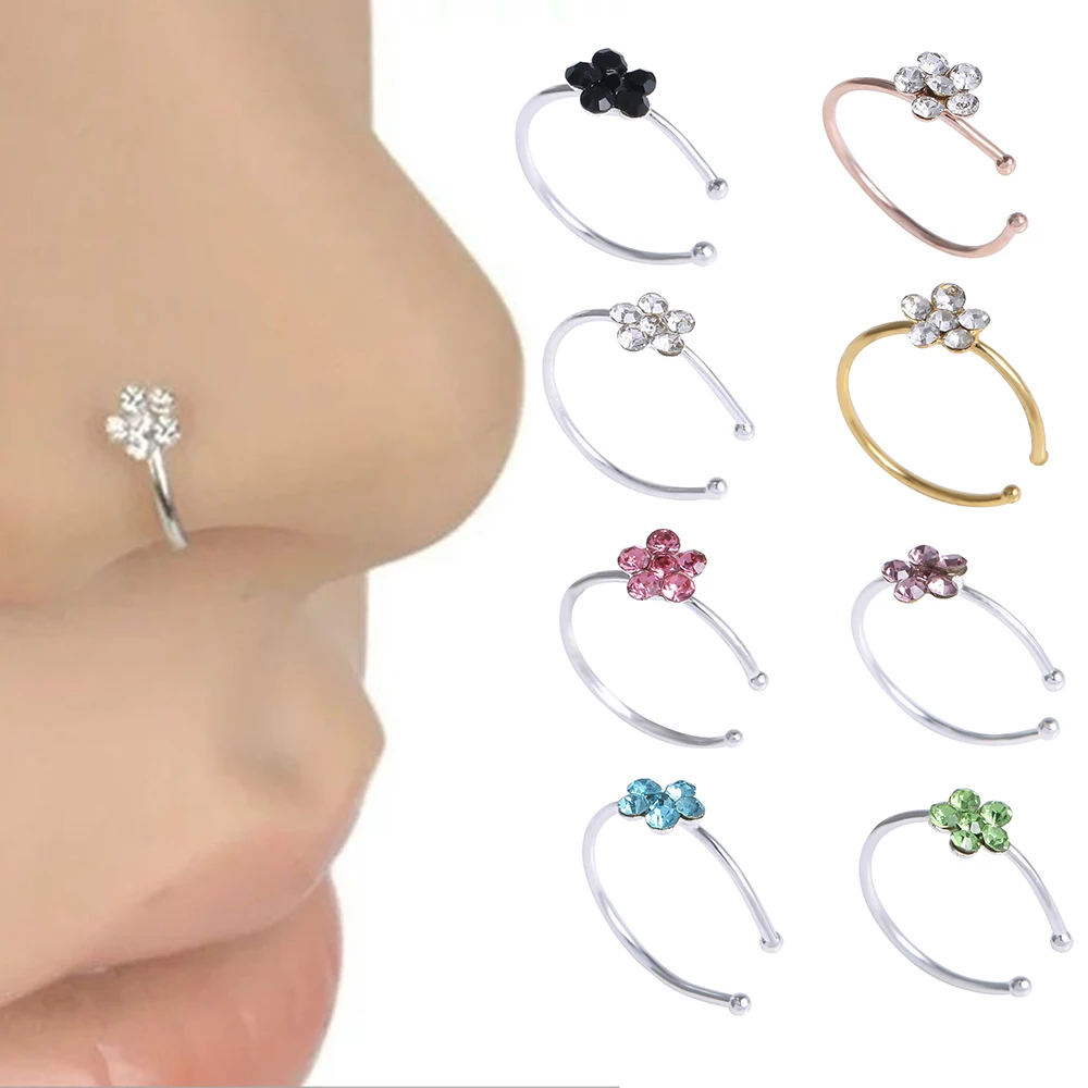 Кольцо для пирсинга носа унисекс, с кристаллами