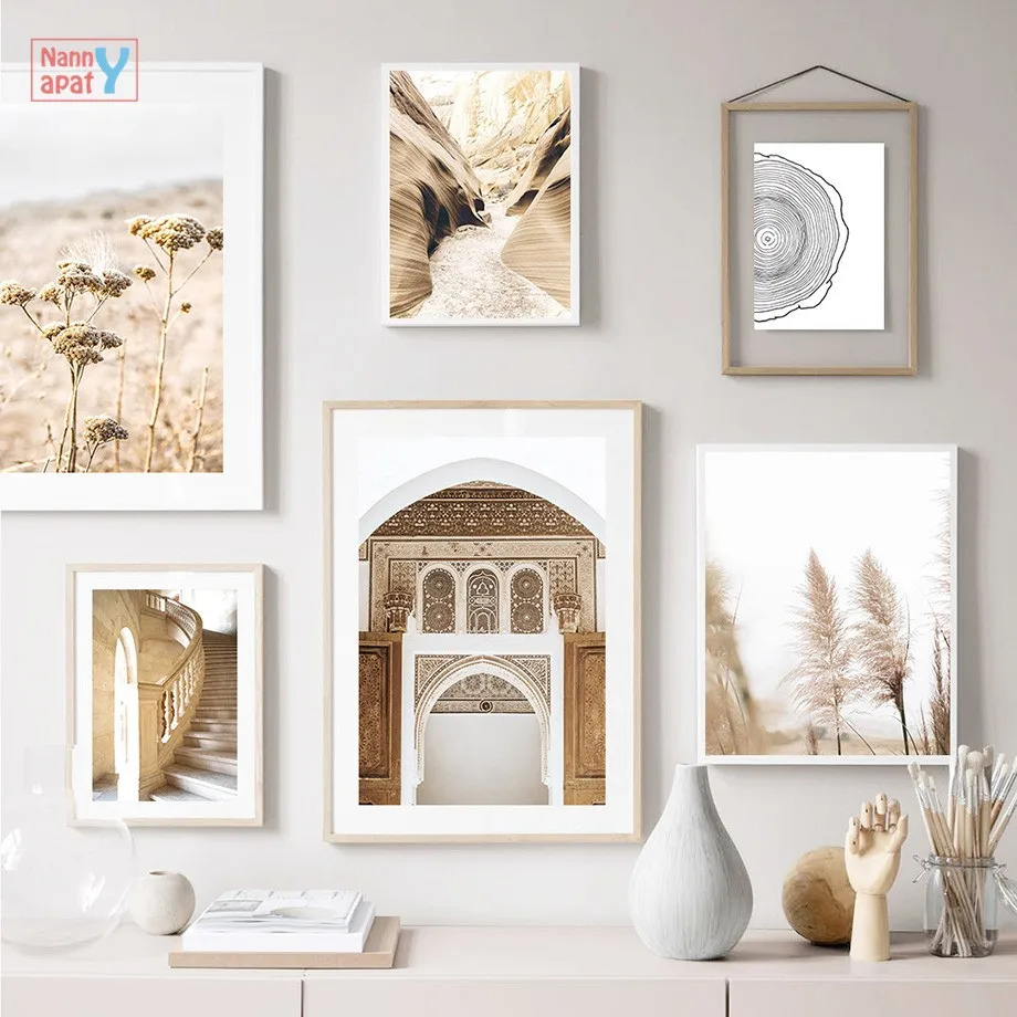 Скандинавский пейзаж, Картина на холсте, цветы, марокканские ворота, горная стена, фотография для гостиной, домашний декор