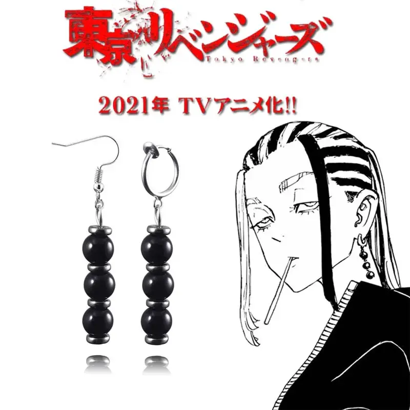 Серьги в стиле аниме Токийские мстители, черные, счастливые бусины, персонаж имауши вакаса, косплей, Висячие серьги для женщин, мужчин, ювелирные аксессуары