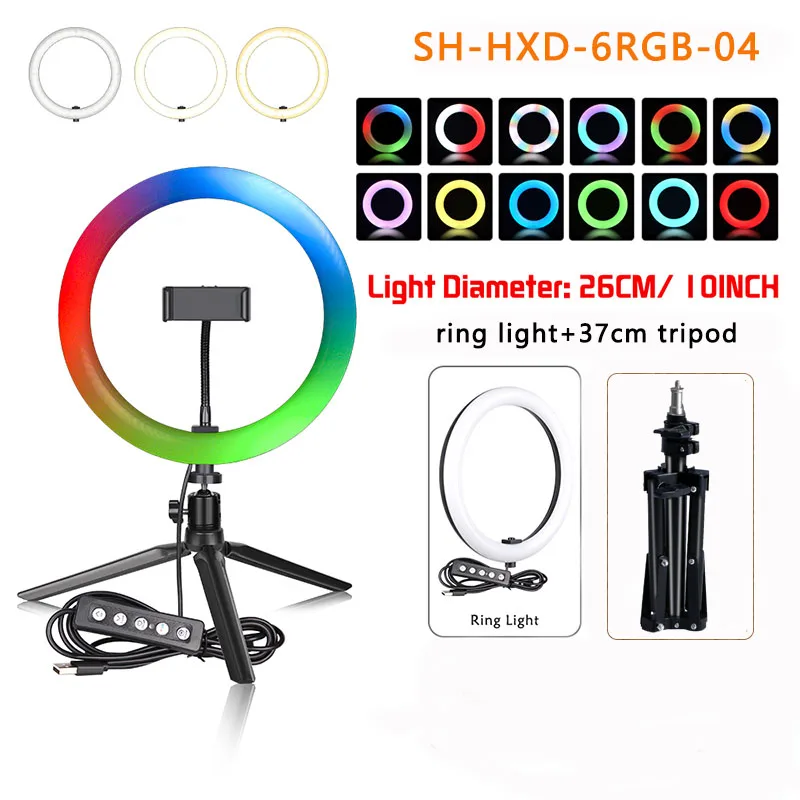 6/10 дюймовый светодиодный rgb-кольцевой светильник со штативом для видеосъемки