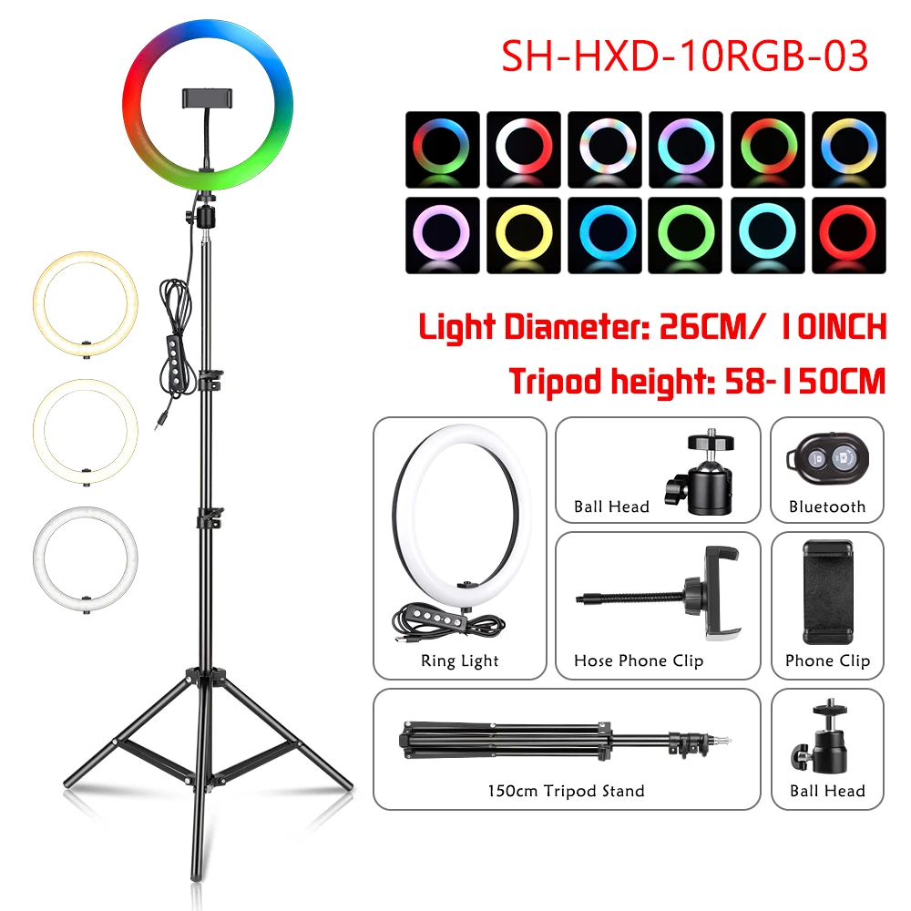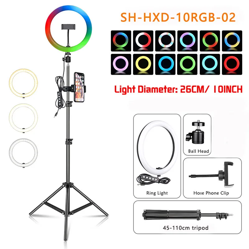 Кольцесветильник Светодиодная лампа SH, 15 цветов, с регулируемой яркостью, со штативом, для фотостудии, для макияжа телефона, живого выступления, Youtuber