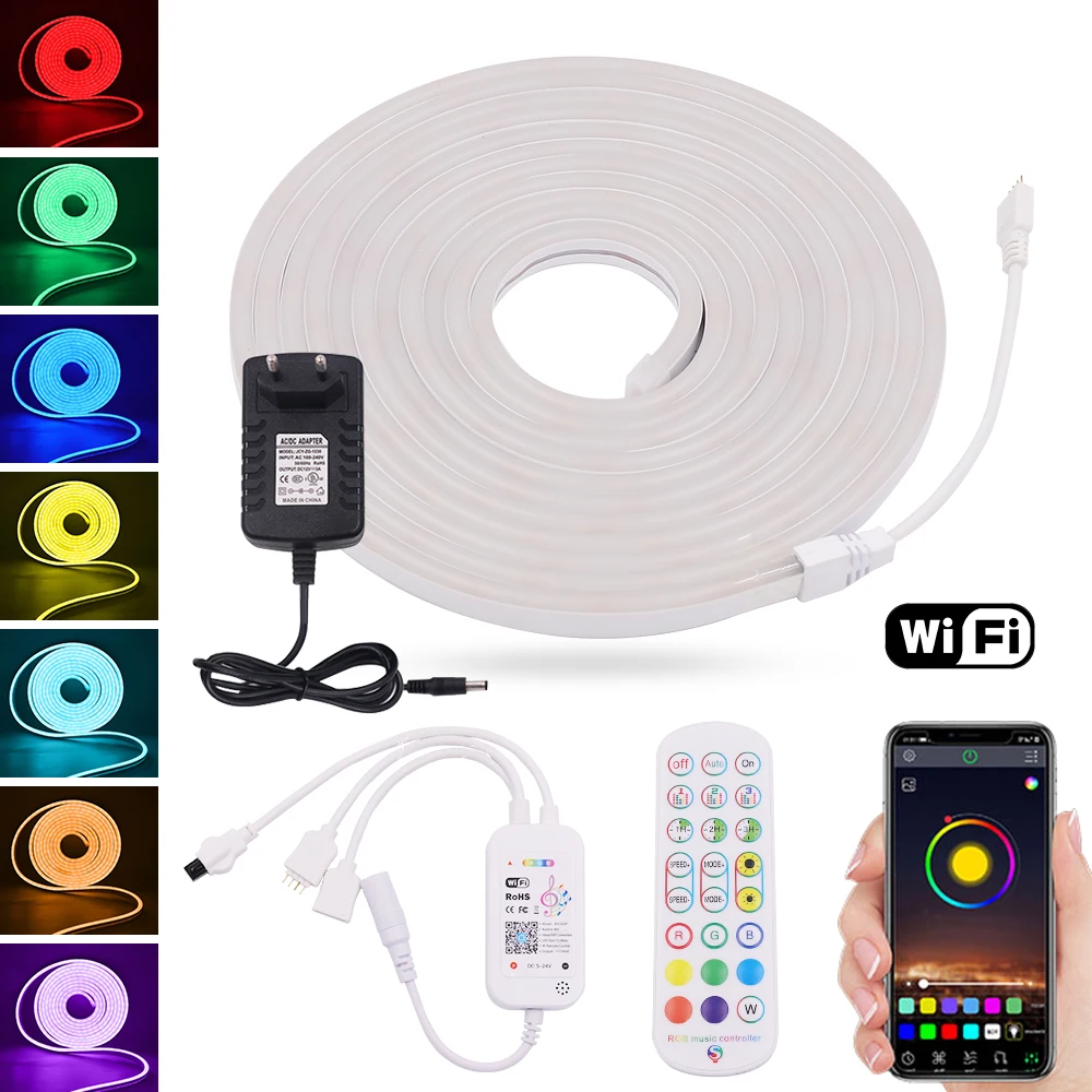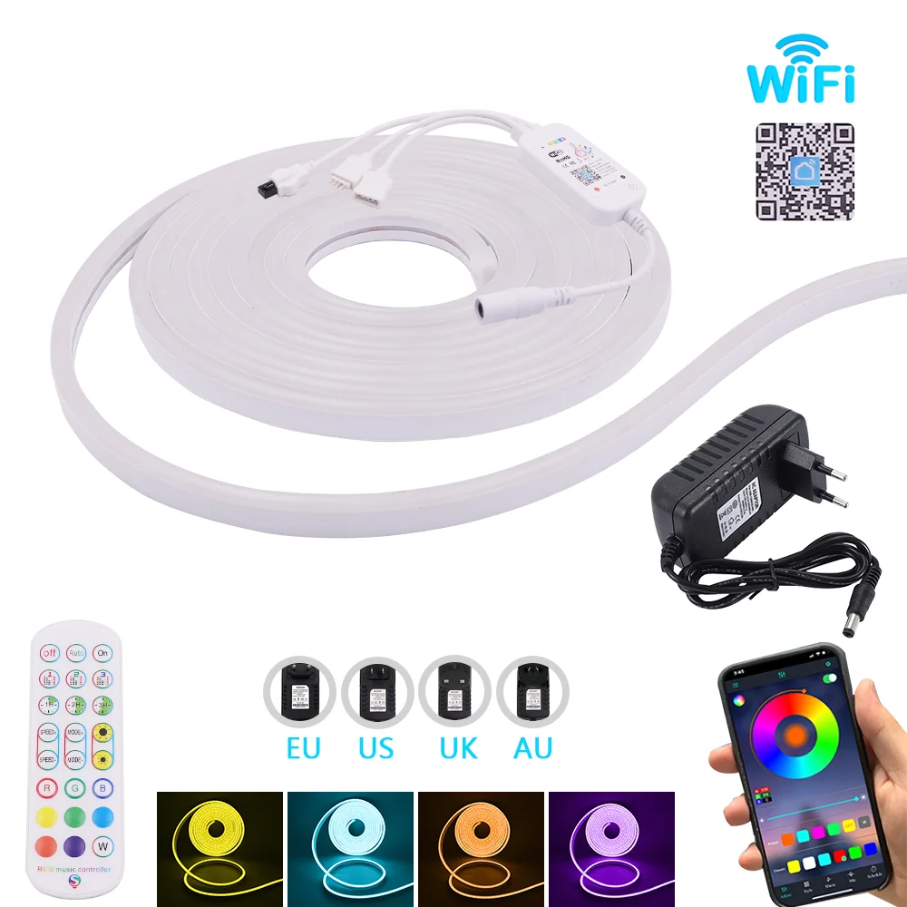 RGB Светодиодная лента Гибкая неоновая лента светильник в 3535 IP67 водонепроницаемая неоновая трубка 96 светодиодовм Tuya Wifi неоновая лента уличная Гибкая неоновая лента