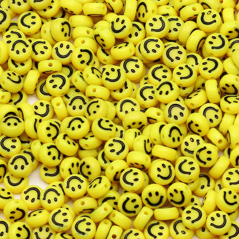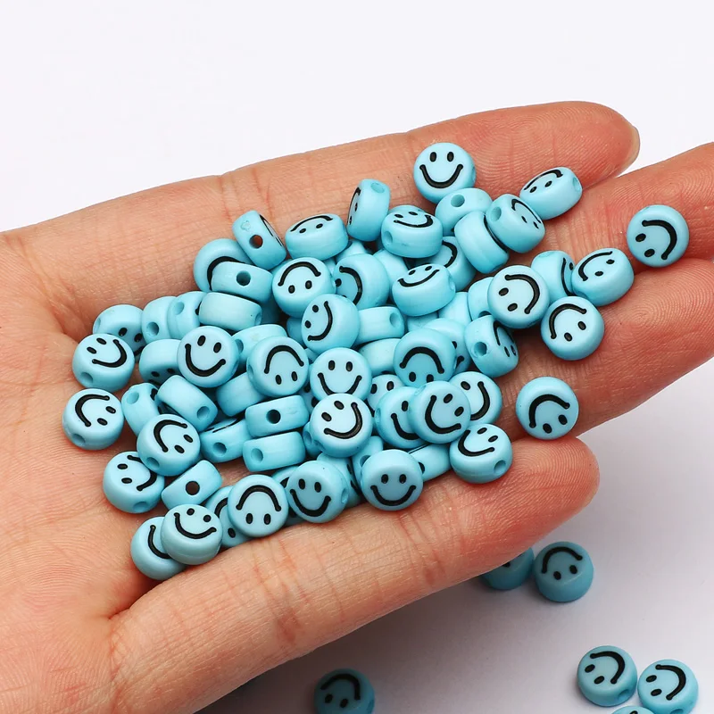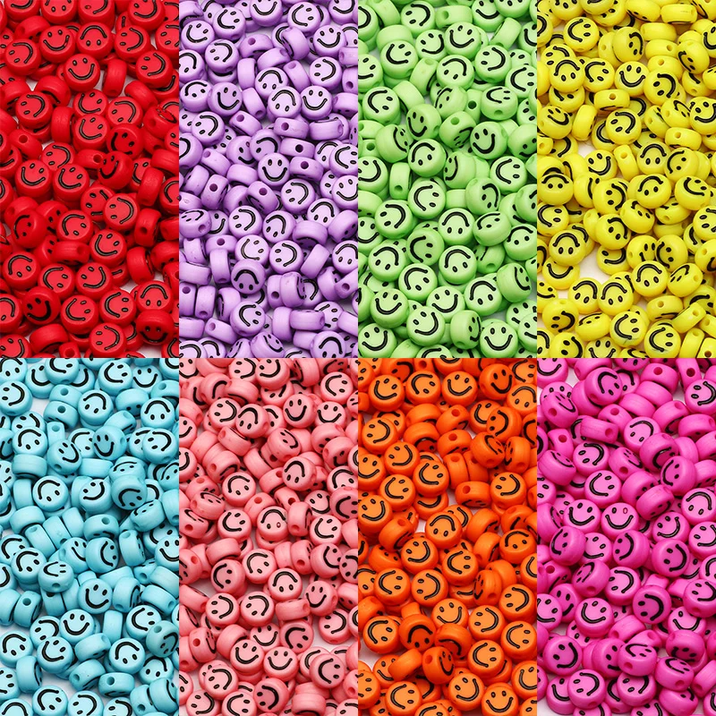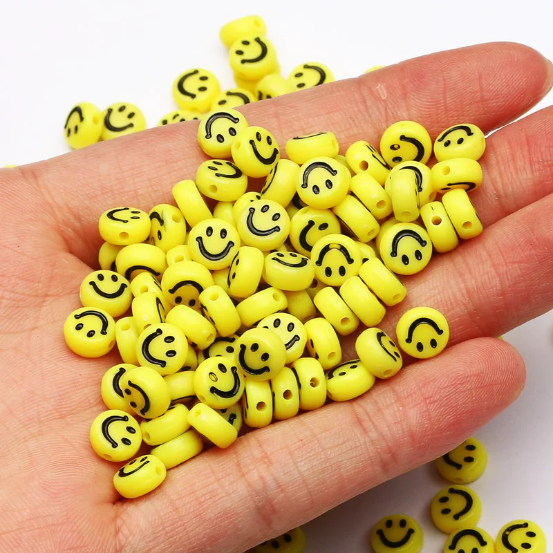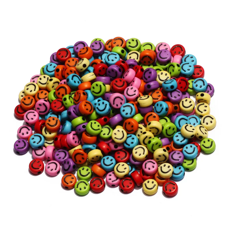 Красочные акриловые бусины со смайликом 7 мм, круглые бусины с отверстием для изготовления ювелирных изделий сделай сам, аксессуары для браслетов и ожерелий ручной работы