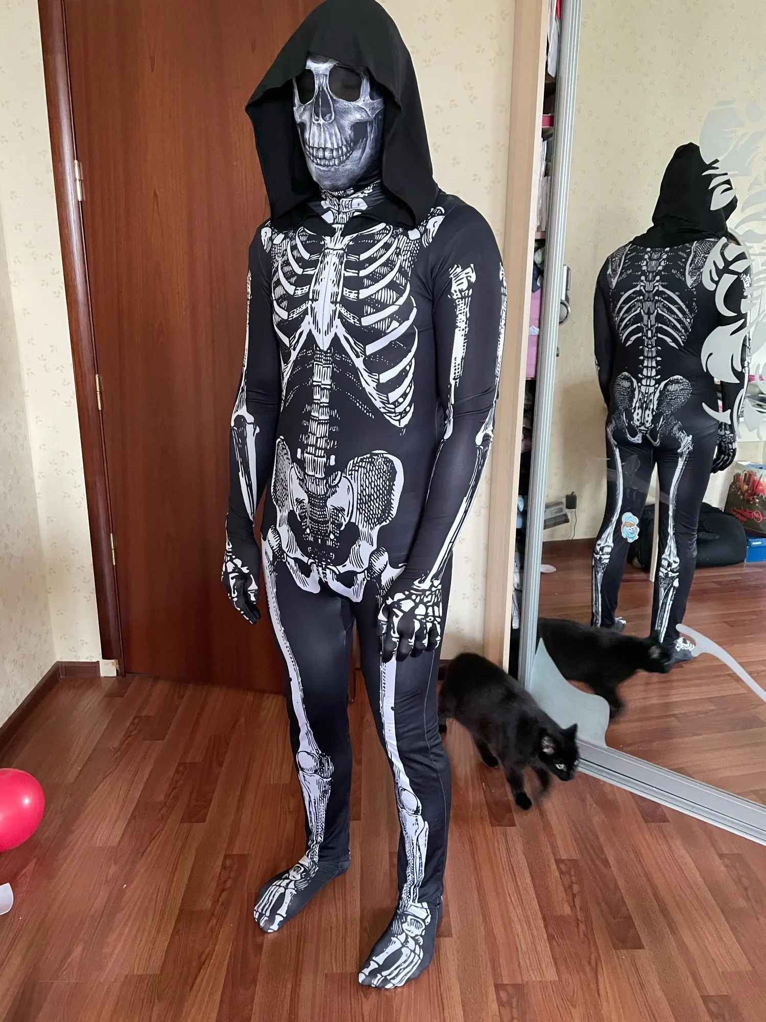 Размер соответствует описанию продавца. Костюм состоит из мизинца, включая ноги и руки с капюшоном и маску (стиль пасмуртана) с сеткой в глазах, чтобы облегчить зрение. У него невидимая передняя молния, которая облегчает надевание. Ткань в порядке, швы правильные и качество трафаретной печати/печати. Статья верна тому, что было объявлено. Восхищенные дети.