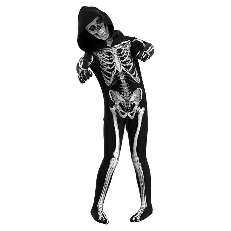 Костюм зомби для детей на Хэллоуин костюм зомби косплей страшный Скелет Череп костюм комбинезон полный комплект одежда для карнавала вечеринки