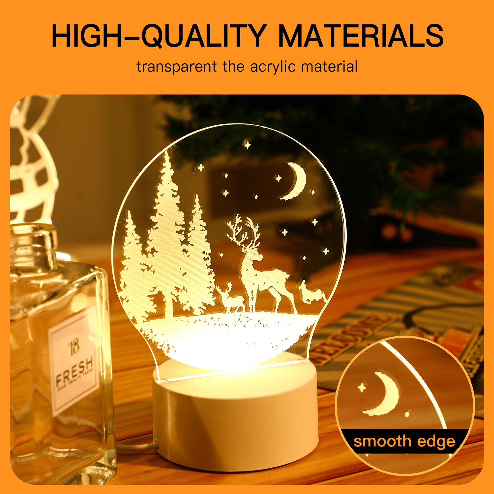 3D акриловые светодиодные ночные светильники, Рождественский Санта-Клаус, елка Лось 2021, рождественские украшения для дома, новогодние подарки 2022, рождественские подарки