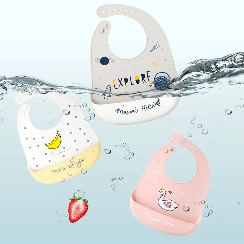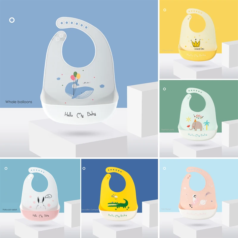 Нагрудник детский из мягкого силикона, с принтом в виде животных