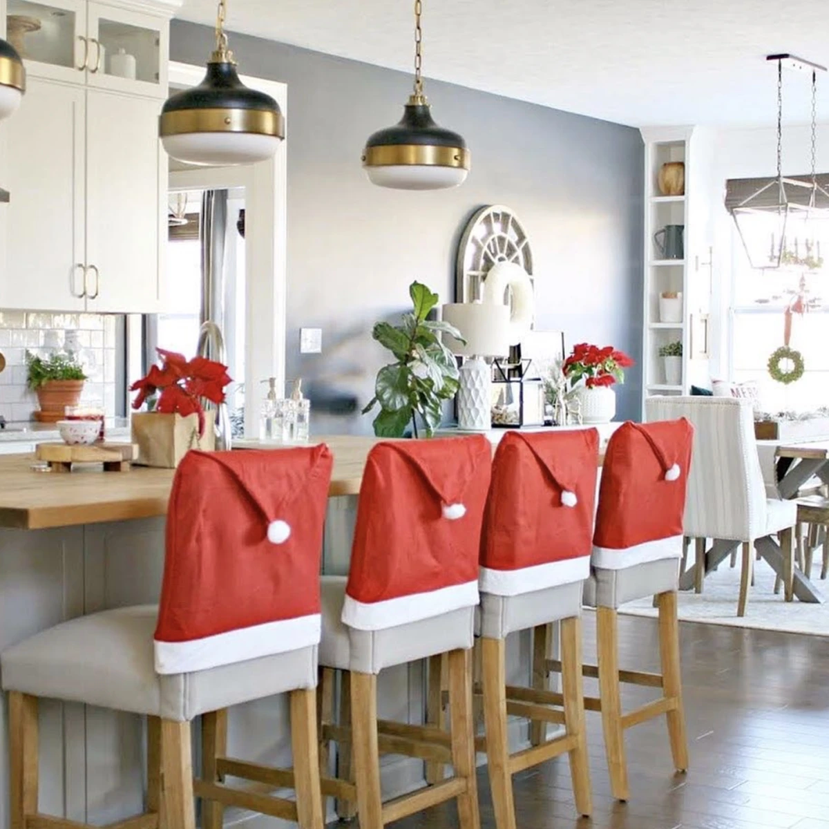 Рождественская шапка Санта-Клауса чехол для спинки стула дома вечер...