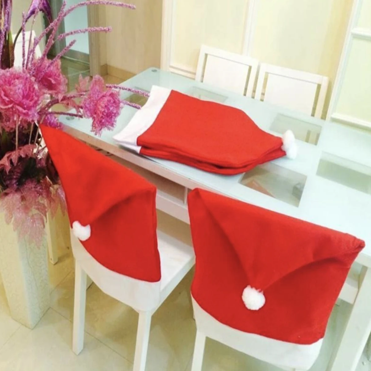 Рождественский чехол на стул, обеденный стол, Рождественская шапка ...