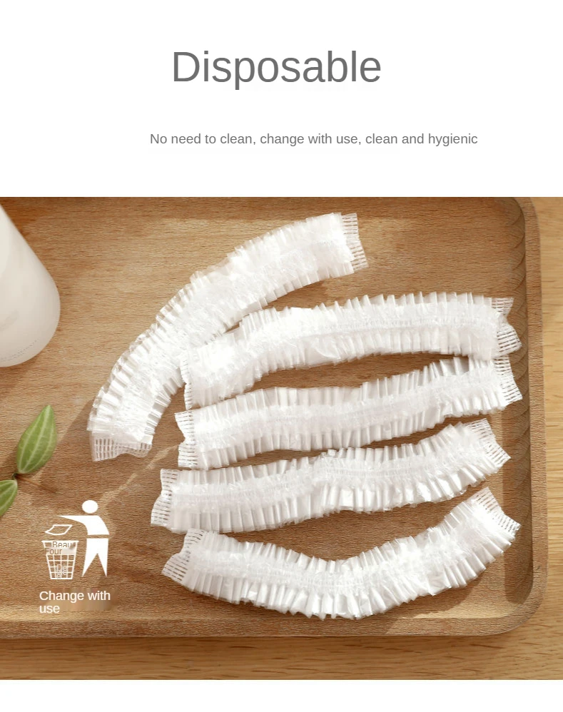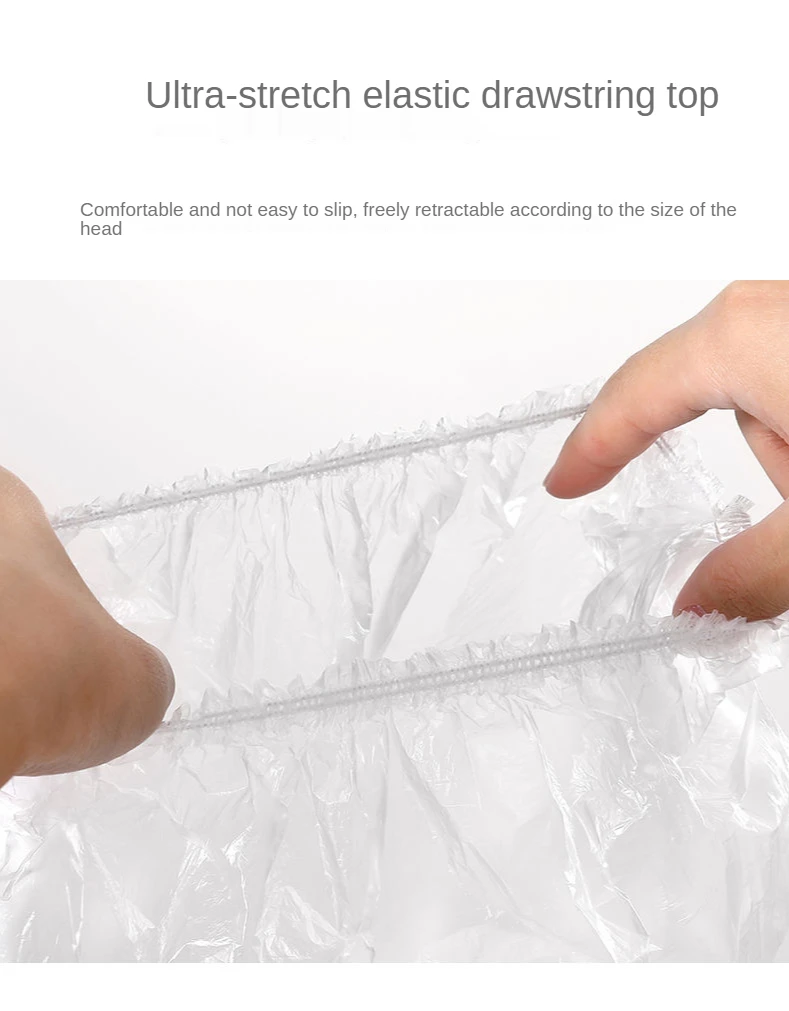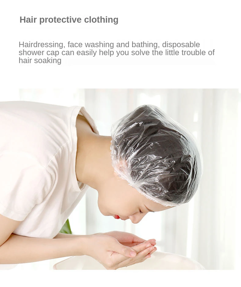 Одноразовые прозрачные эластичные шапочки для душа, 100 штук